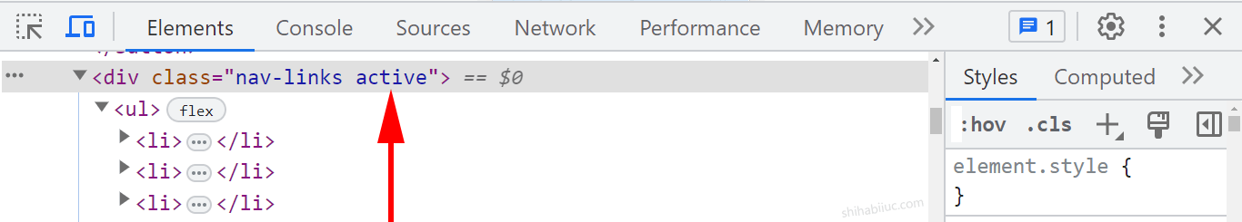 In my HTML, I have two classes such as .hamburger & .nav-links (as you also see in the screenshot below).