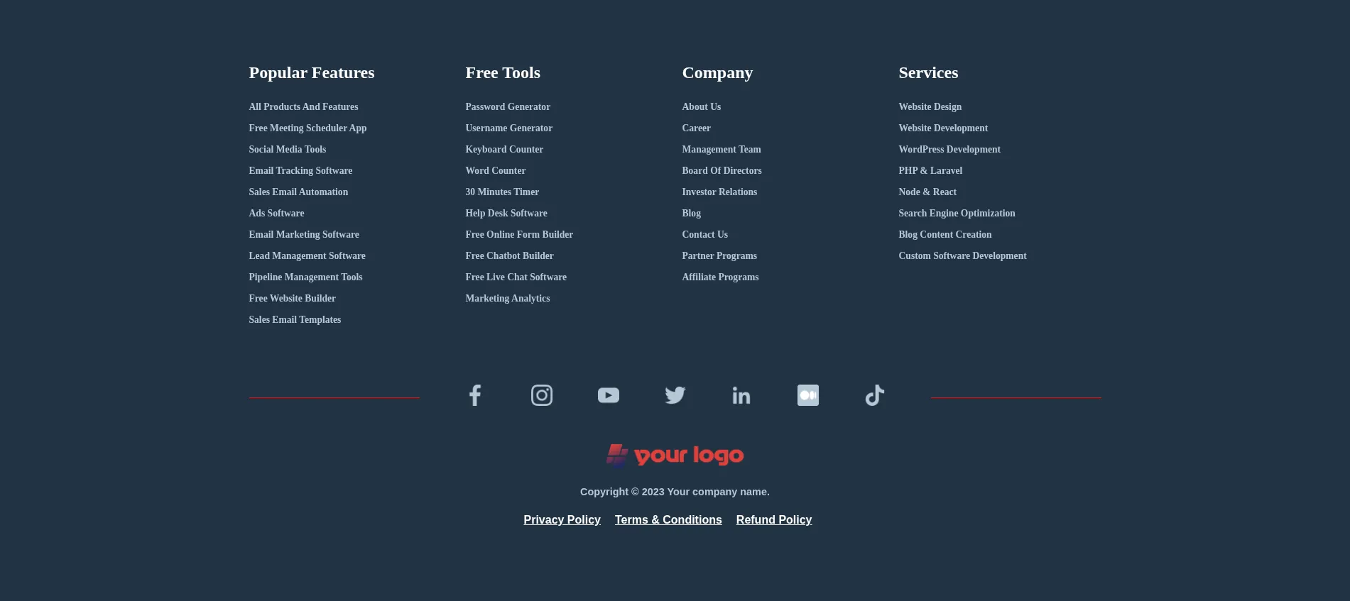 Here, you will get a couple of footer templates. Each template is ready to use - you just need to replace links. These are mobile responsive.