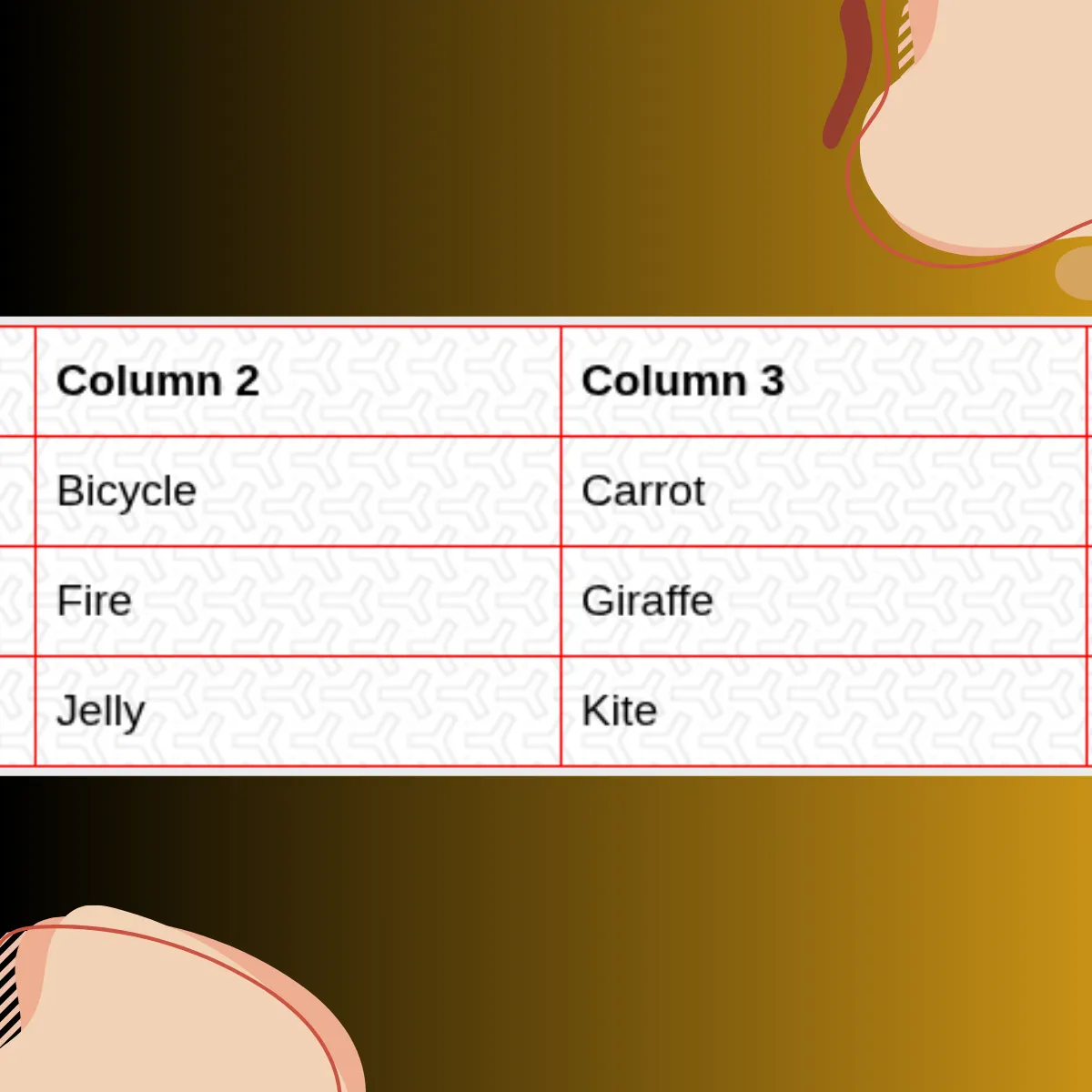 But you should not use a colorful image for the table background until you’re sure what you’re doing.